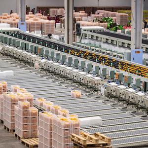 1月6日,在中國三峽柑橘(奉節臍橙)交易中心,全自動(dòng)分揀線(xiàn)將臍橙自動(dòng)分揀裝筐。
