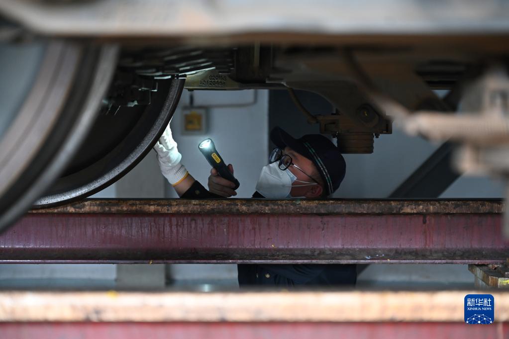 春運期間,在中國鐵路南昌局集團有限公司福州車(chē)輛段和動(dòng)車(chē)段內,工作人員對綠皮火車(chē)、高鐵動(dòng)車(chē)等多種車(chē)型進(jìn)行檢修、維護?!盎疖?chē)醫生”對列車(chē)進(jìn)行全方位排障,確保春運期間列車(chē)運行安全。