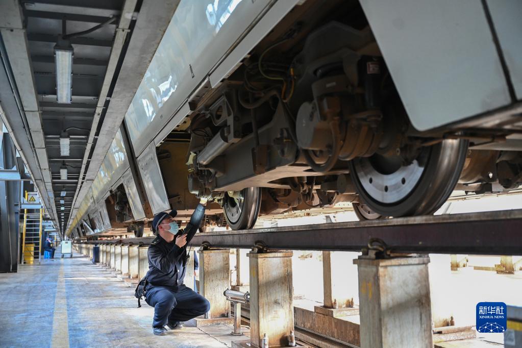 春運期間,在中國鐵路南昌局集團有限公司福州車(chē)輛段和動(dòng)車(chē)段內,工作人員對綠皮火車(chē)、高鐵動(dòng)車(chē)等多種車(chē)型進(jìn)行檢修、維護?!盎疖?chē)醫生”對列車(chē)進(jìn)行全方位排障,確保春運期間列車(chē)運行安全。