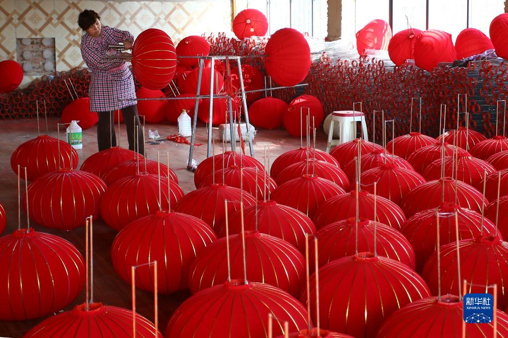 春節臨近,燈籠俏銷(xiāo),不少地方加緊趕制燈籠,供應節日市場(chǎng)。