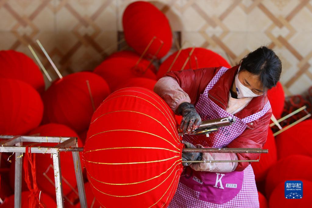春節臨近,燈籠俏銷(xiāo),不少地方加緊趕制燈籠,供應節日市場(chǎng)。