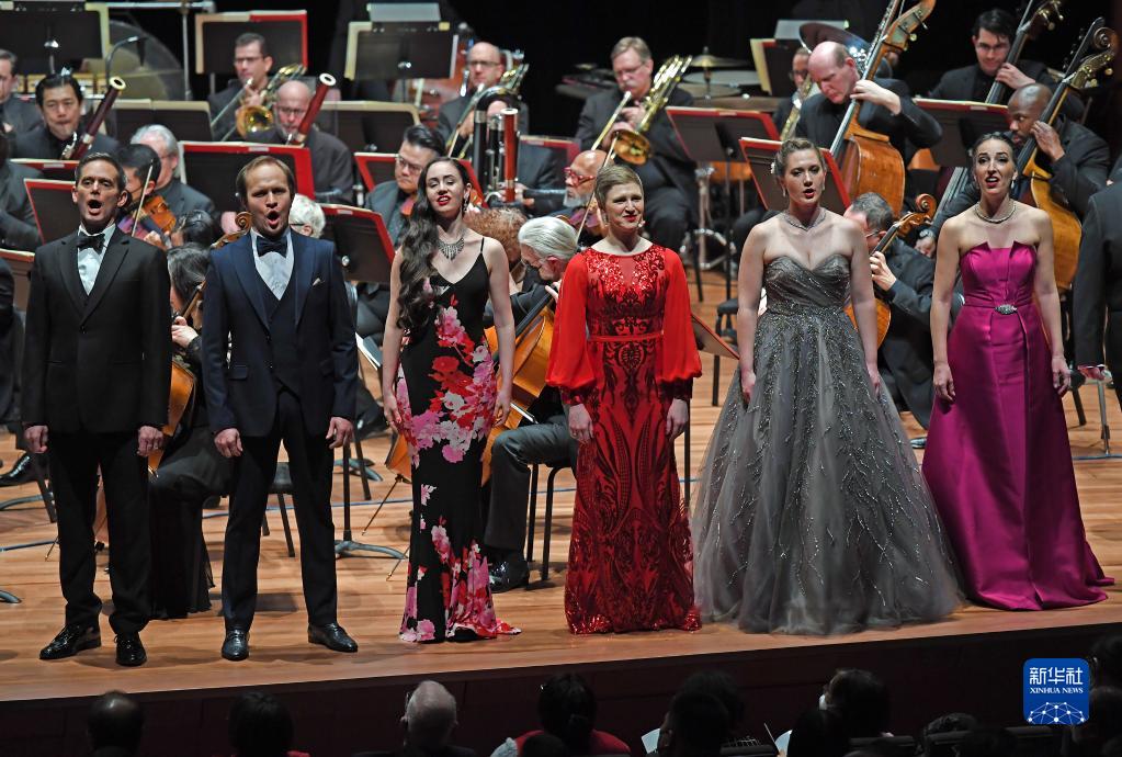 “唐詩(shī)的回響”新春音樂(lè )會(huì )7日晚在美國紐約林肯中心舉行。中國常駐聯(lián)合國代表張軍、第77屆聯(lián)大主席克勒希、中國駐紐約總領(lǐng)事黃屏、聯(lián)合國高級官員、近40個(gè)國家常駐聯(lián)合國使節以及紐約各界人士約700人觀(guān)看了演出。新華社記者 李睿 攝