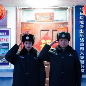 1月8日,史先強和妻子沈欣在洛古河夫妻警務(wù)室前敬禮。