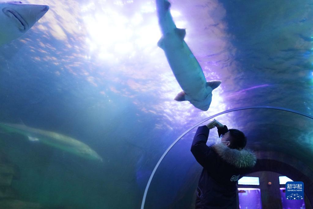 1月9日,參觀(guān)者在撫遠市魚(yú)博館參觀(guān)。