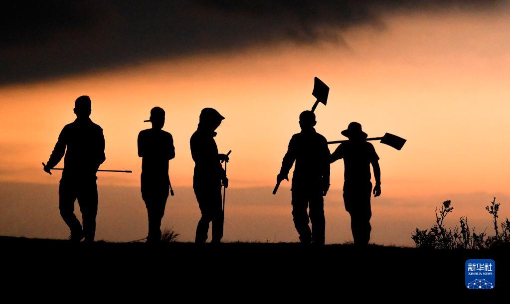 這是2022年7月26日在鄂托克前旗百萬(wàn)畝檸條種植項目區拍攝的治沙人員。