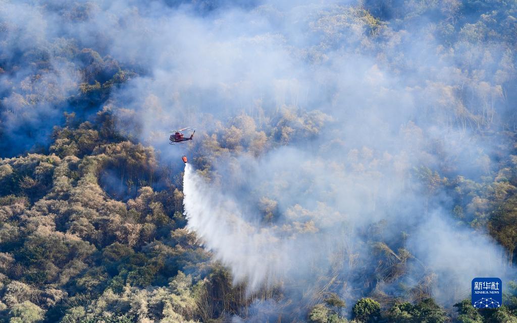 2022年8月18日,一架救援直升機在重慶涪陵進(jìn)行滅火作業(yè)。