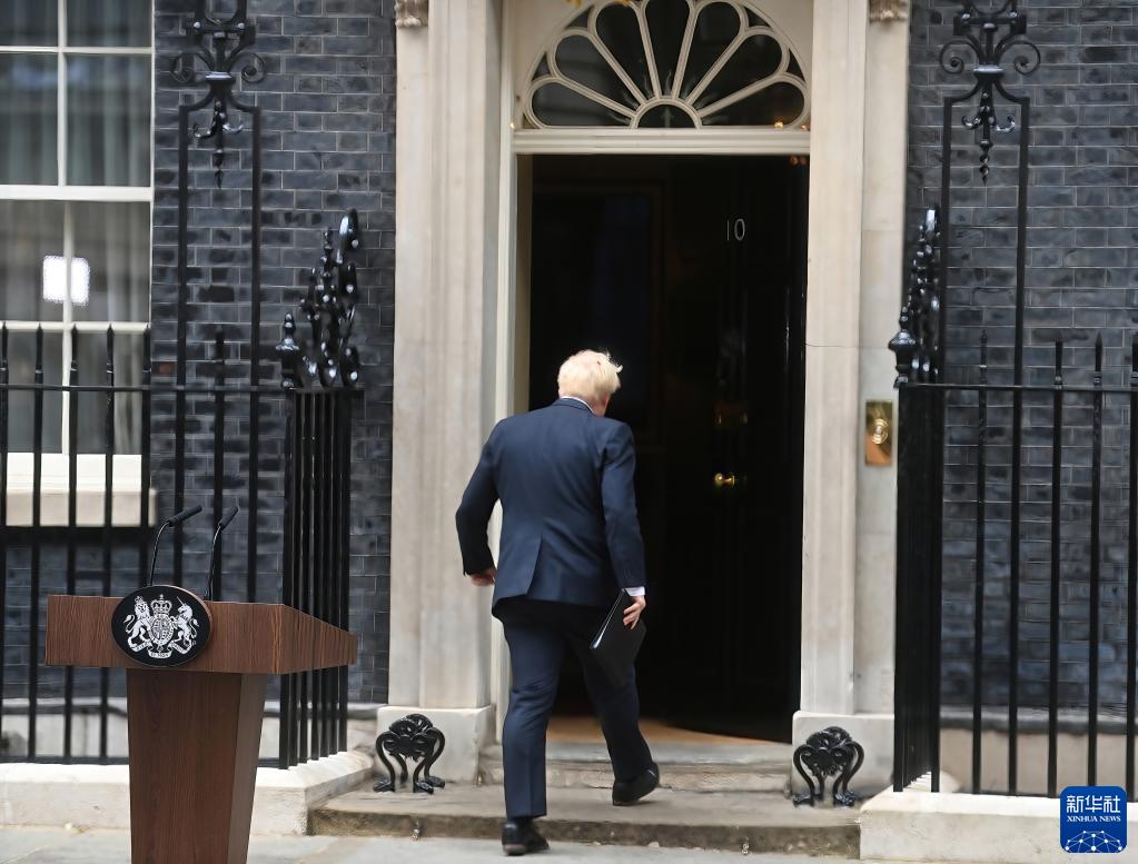 2022年7月7日,英國首相鮑里斯·約翰遜在倫敦唐寧街10號門(mén)前發(fā)表辭去保守黨黨首和首相職務(wù)的講話(huà)后離開(kāi)。2022年下半年英國政壇動(dòng)蕩,經(jīng)歷3任首相。
