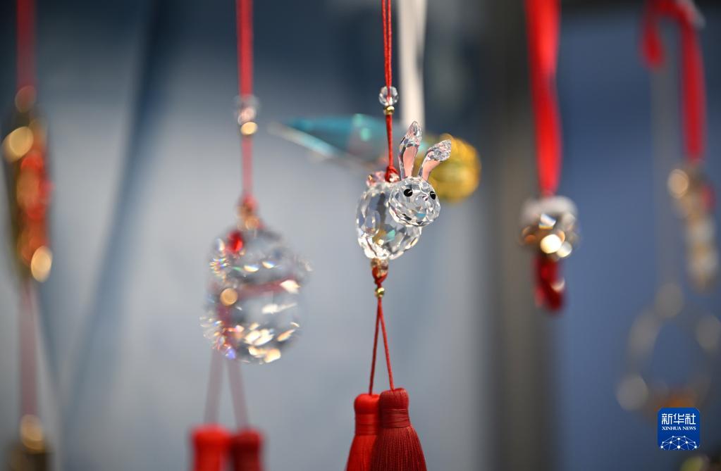在??趪H免稅城拍攝的一款兔年主題掛飾(1月8日攝)。
