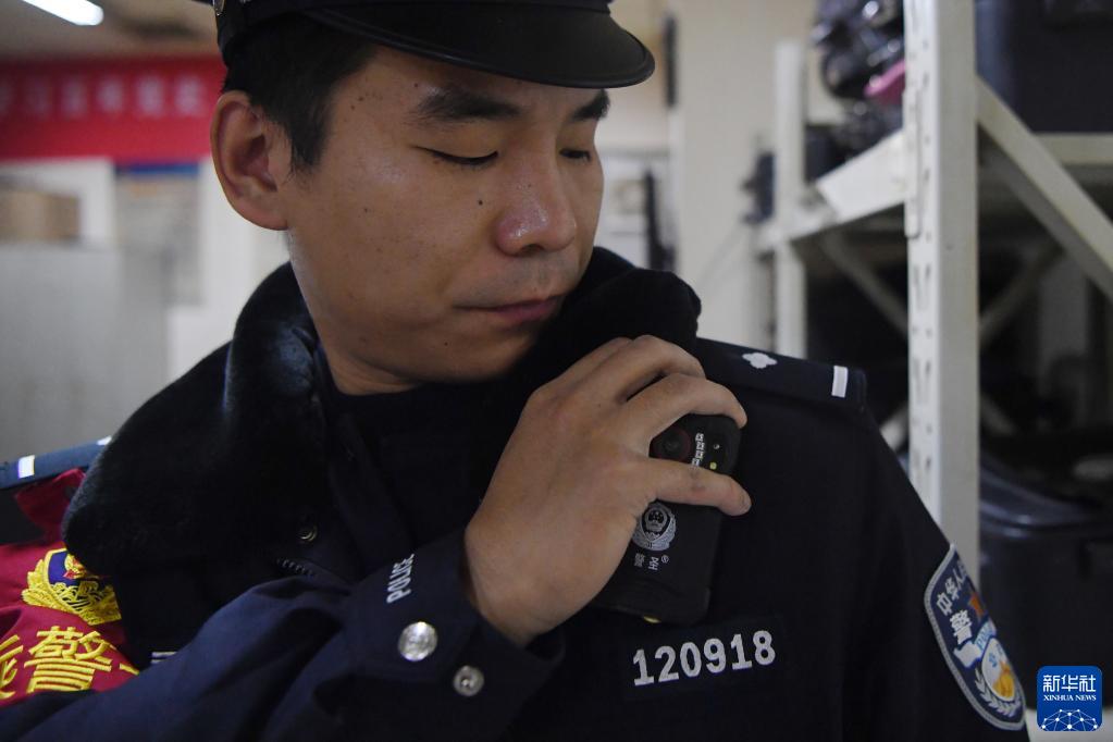 1月9日,白旭偉在值乘前檢查佩戴執法記錄儀。