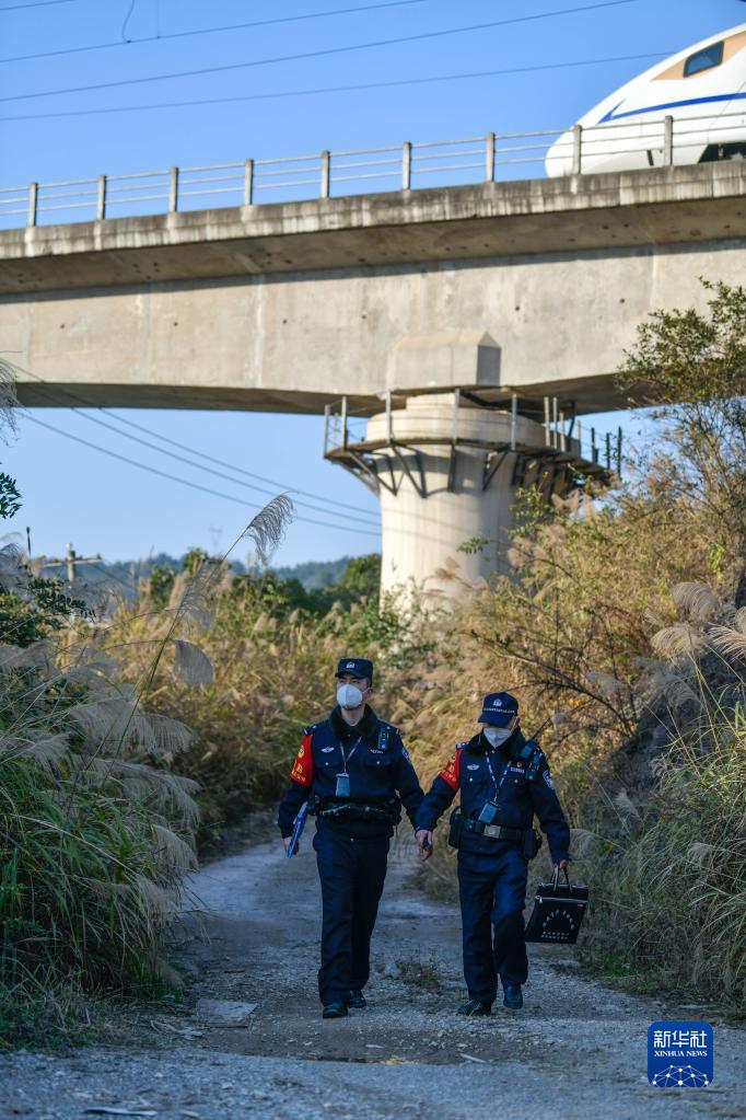 1月8日,鐵路警察王云(右)和謝源在鐵路沿線(xiàn)進(jìn)行線(xiàn)路安全巡查。