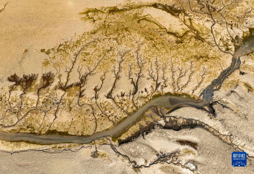 隨著(zhù)黃河小浪底水利樞紐汛前調水調沙的結束,黃河小浪底庫區水位下降,大面積河床裸露出水面,河水在河床上沖刷留下的痕跡形成黃河“沙畫(huà)”。