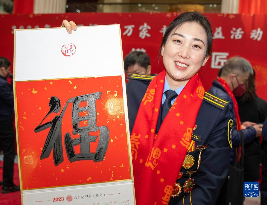 當日,由中華全國總工會(huì )指導,全國總工會(huì )宣教部、中國書(shū)法家協(xié)會(huì )主辦的2023年“送萬(wàn)福、進(jìn)萬(wàn)家”首場(chǎng)示范書(shū)法公益活動(dòng)——“致敬勞模工匠”專(zhuān)場(chǎng)活動(dòng)在京舉行,出席活動(dòng)的多位書(shū)法家揮毫潑墨,為勞動(dòng)模范、大國工匠代表等一線(xiàn)職工書(shū)寫(xiě)春聯(lián)和福字,表達新年的問(wèn)候與祝福。