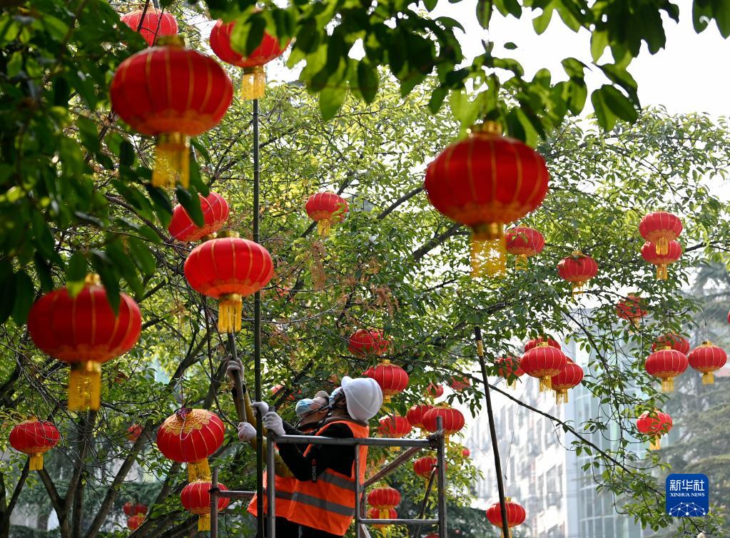 春節臨近,年味漸濃。多地大街小巷的紅燈籠高高掛起,洋溢著(zhù)喜慶的節日氛圍。新華社發(fā)(劉永紅 攝)