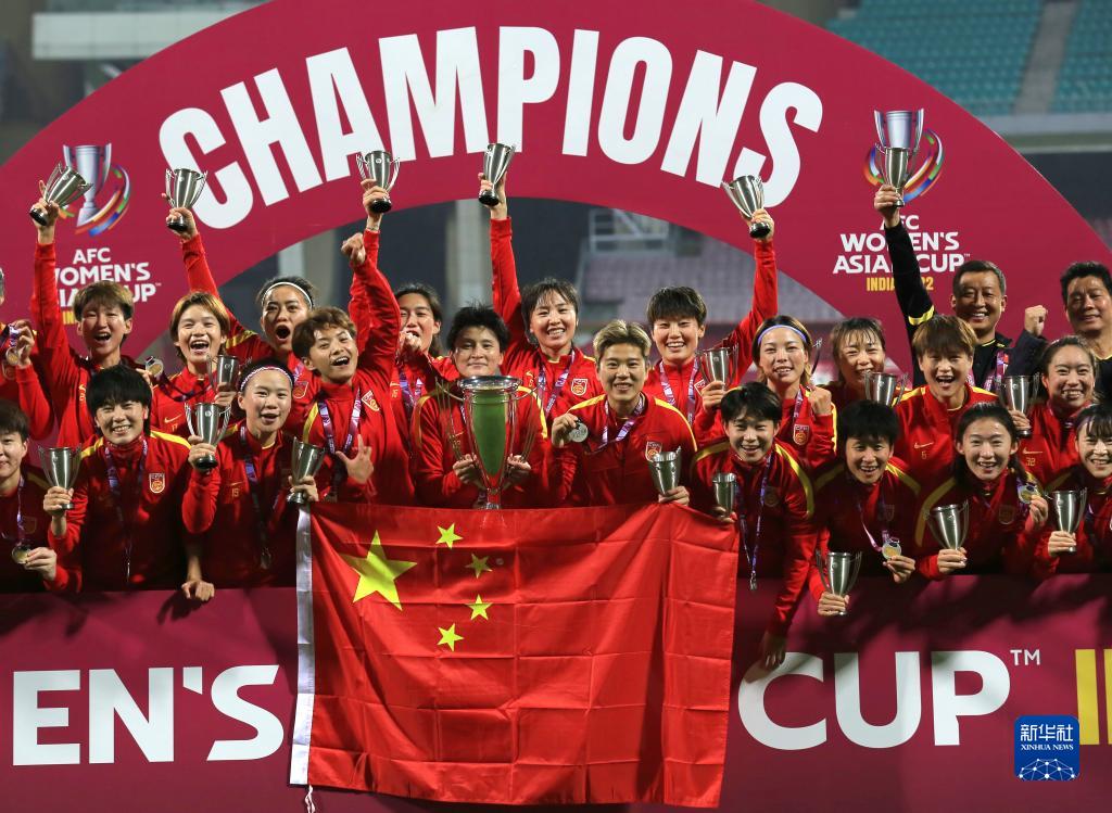 當日,在印度孟買(mǎi)舉行的2022女足亞洲杯決賽中,中國隊以3比2戰勝韓國隊,奪得冠軍。