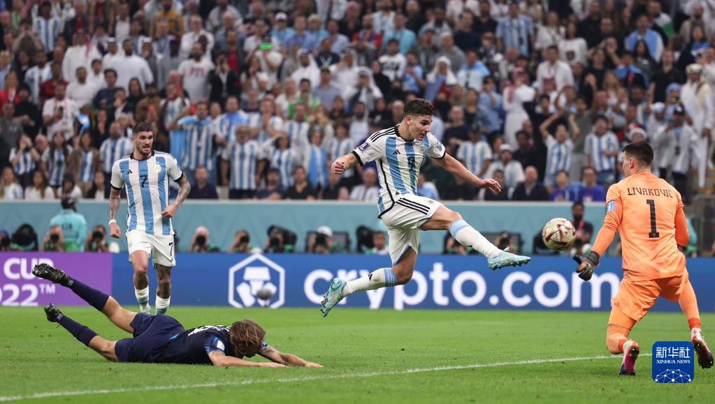 當日,在卡塔爾盧賽爾球場(chǎng)進(jìn)行的2022卡塔爾世界杯足球賽半決賽中,阿根廷隊以3比0戰勝克羅地亞隊,晉級決賽。