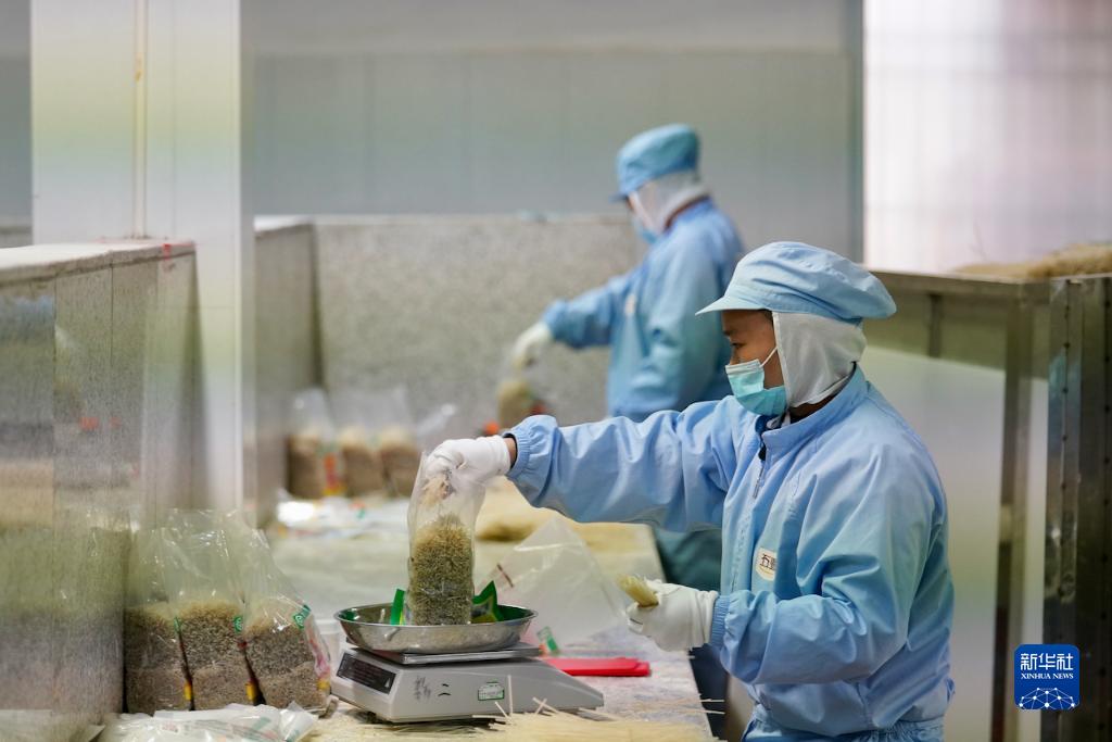 1月10日,會(huì )昌縣五豐食品有限公司的工作人員在車(chē)間對米粉進(jìn)行稱(chēng)重。