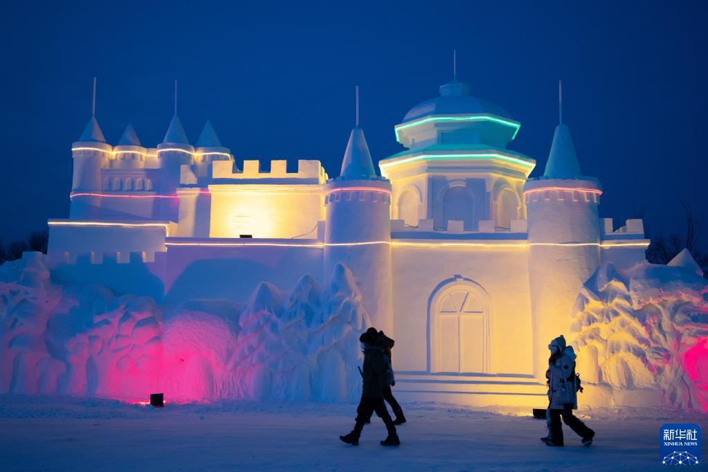 1月7日,游客在漠河市北極村冰雪童話(huà)世界內游玩。