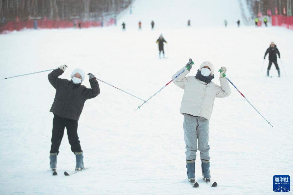 1月7日,游客在漠河市北極村滑雪場(chǎng)內體驗滑雪。