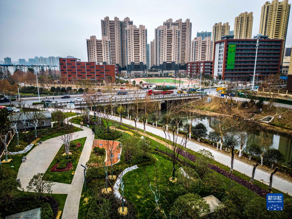 1月10日拍攝的合肥市瑤海區的一處新建街頭游園(無(wú)人機照片)。
