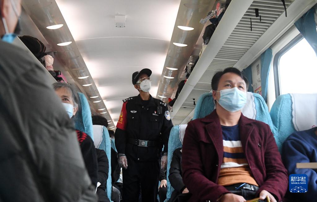 1月10日,覃業(yè)民在車(chē)廂內巡邏。