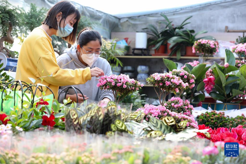 1月10日,人們在河北省石家莊市趙縣韓村鎮小呂村花卉基地選購鮮花。