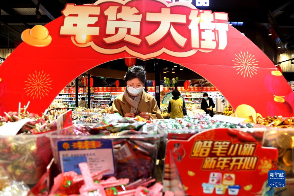 1月10日,市民在江蘇省連云港市連云區一家超市選購年貨。