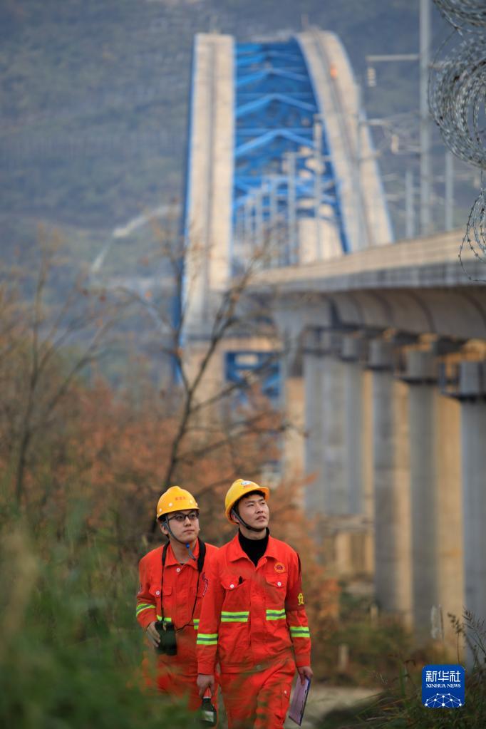 1月10日,貴陽(yáng)供電段工作人員對大橋上的供電設備進(jìn)行檢查。