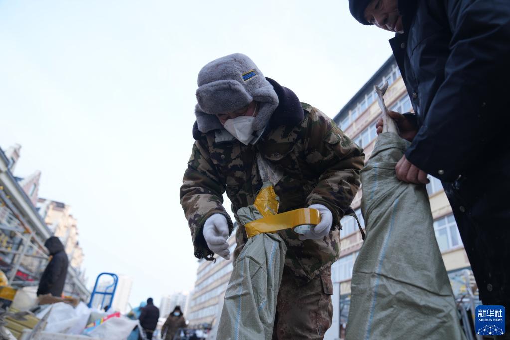 1月10日,東極魚(yú)市的魚(yú)販(左)在打包魚(yú)品準備發(fā)貨。