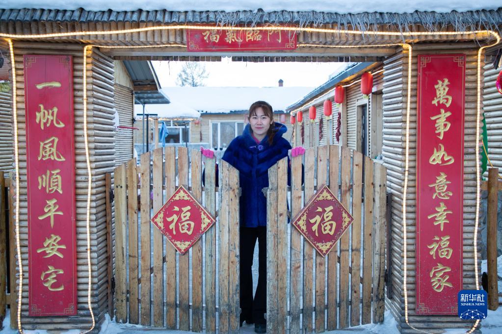 1月7日,北極村民宿經(jīng)營(yíng)者史瑞娟在門(mén)前等待入住的游客。
