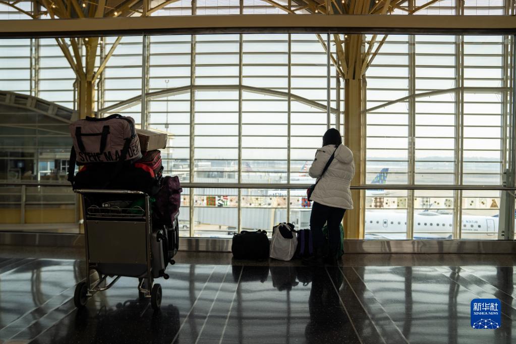 1月11日,一名旅客在美國弗吉尼亞州阿靈頓的里根國家機場(chǎng)等待。新華社記者 劉杰 攝