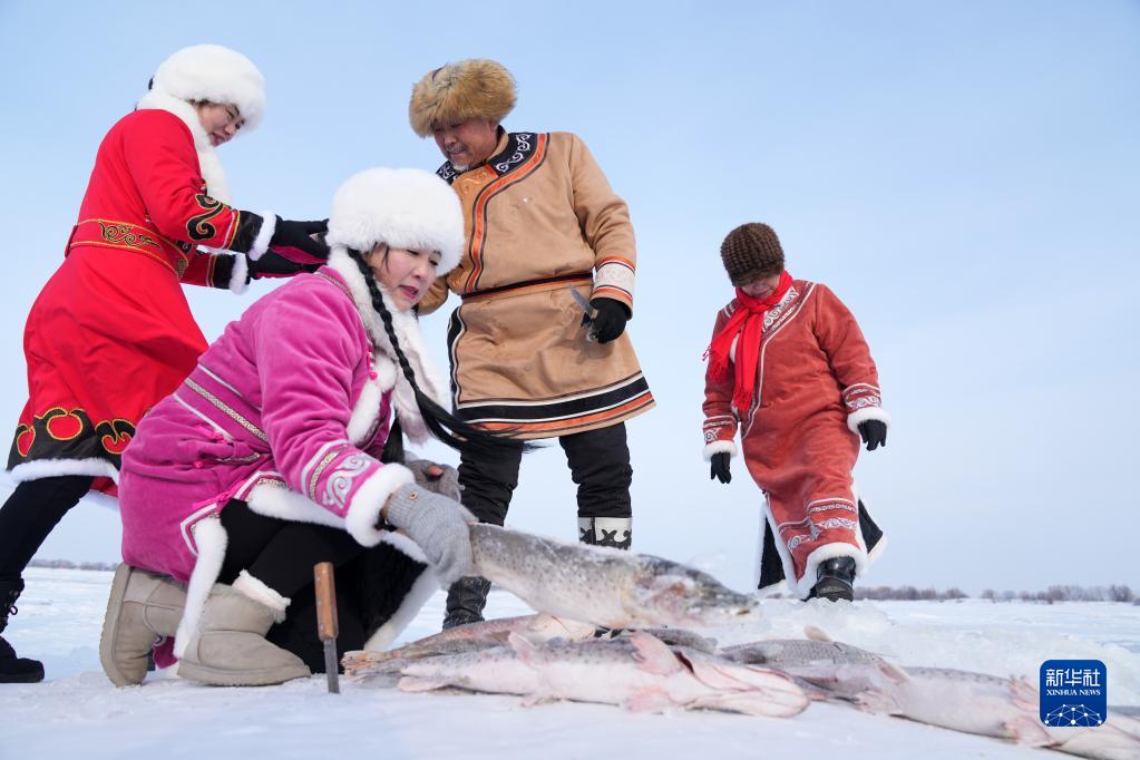 赫哲族是我國人口較少民族之一,世居黑龍江、烏蘇里江、松花江流域,因地處祖國東方,被稱(chēng)為“守望太陽(yáng)的民族”。春節臨近,在赫哲族聚居區之一黑龍江省撫遠市,一些赫哲族群眾開(kāi)展冰湖冬捕、雪地“頂杠”、“魚(yú)王角力”等活動(dòng),展現赫哲族的傳統民俗。