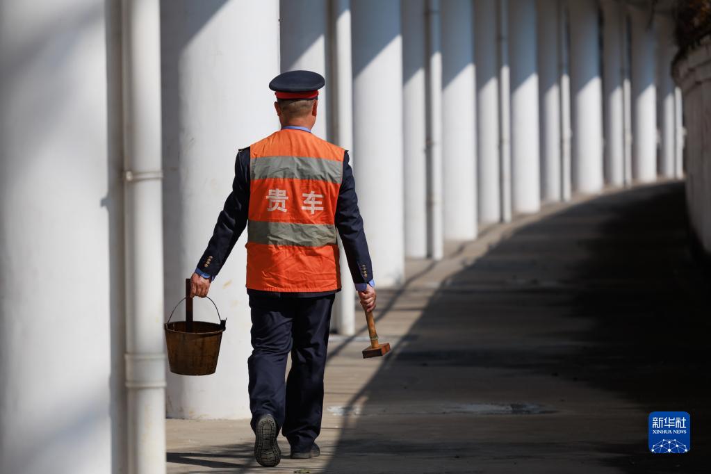 毛忠輝走過(guò)大田壩車(chē)站月臺去刷道岔油(1月11日攝)。