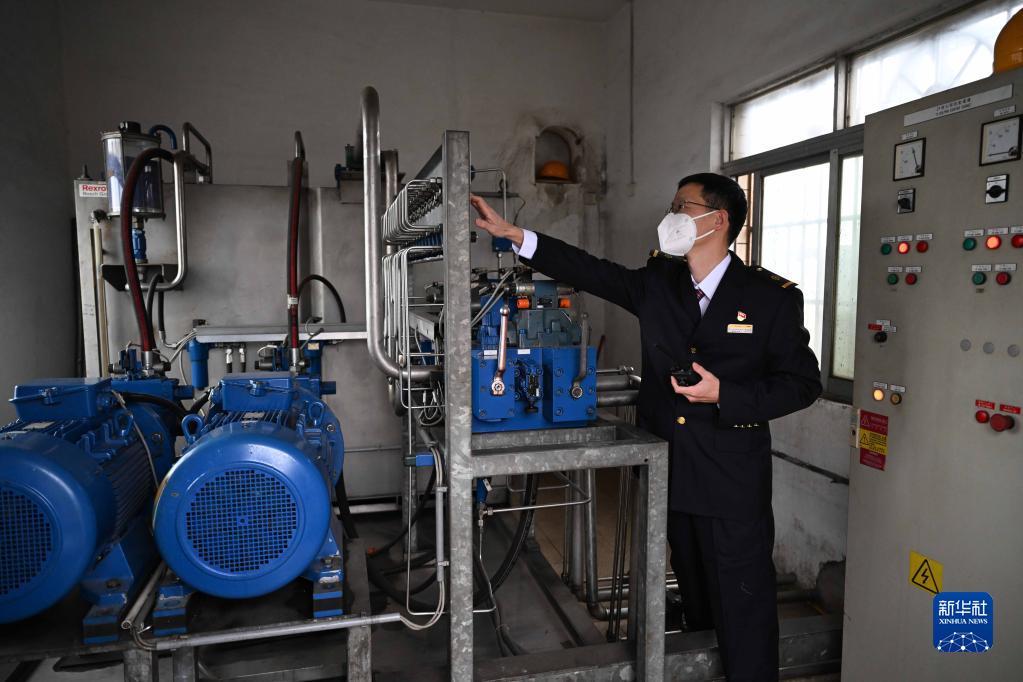在廣東徐聞的粵海鐵路輪渡北港碼頭,熊美周在動(dòng)力間檢查設備運行情況(1月8日攝)。