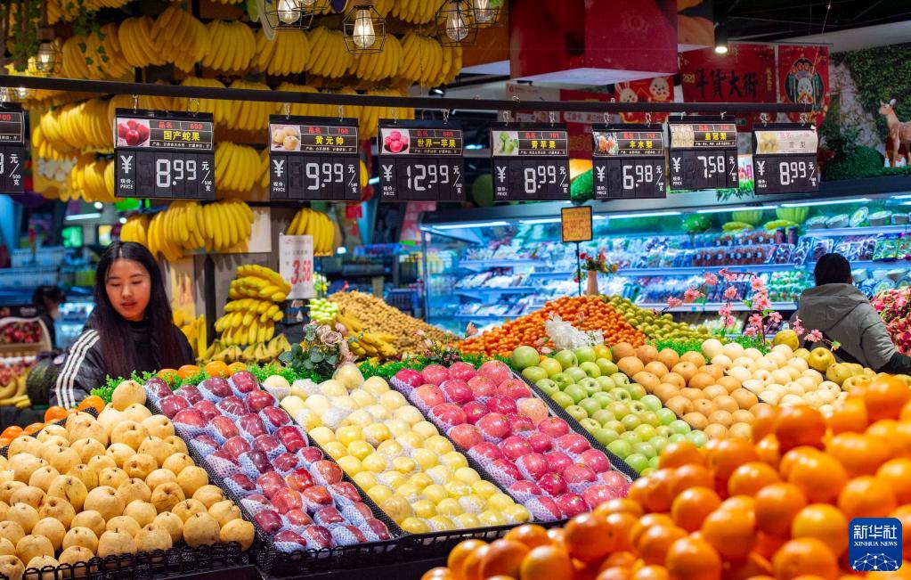 1月12日,顧客在貴州省從江縣一家超市選購水果。