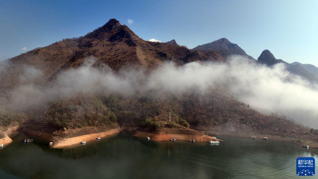 冬日,貴州省羅甸縣紅水河畔山巒起伏,云纏霧繞,景色如畫(huà)。
