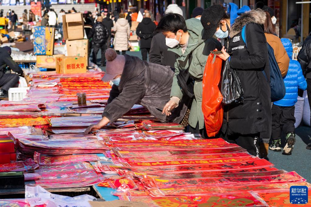 1月12日,市民在年貨大集上選購春聯(lián)。