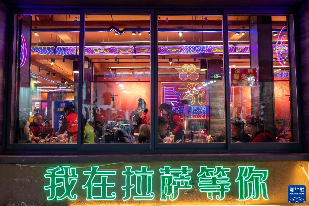 近期,拉薩夜經(jīng)濟逐漸升溫,人們在夜幕下品嘗美食、購物消費。
