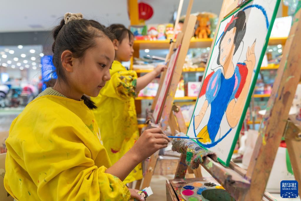 在拉薩城關(guān)區萬(wàn)達廣場(chǎng),小朋友在一家美術(shù)工作室學(xué)習畫(huà)畫(huà)(1月11日攝)。