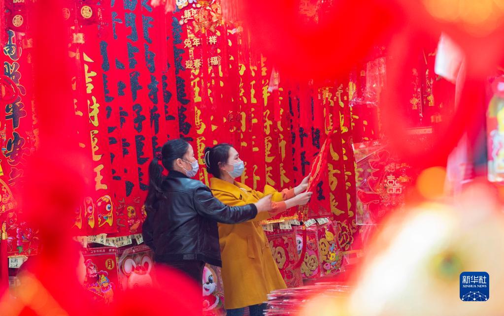 臨近春節,各地年貨市場(chǎng)熱熱鬧鬧,人們忙著(zhù)選購新春飾品。