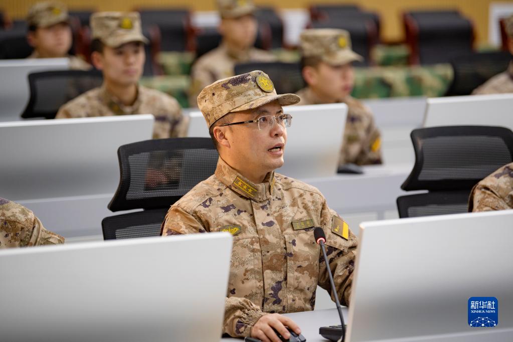 火箭軍某部處長(cháng)丁國林組織對抗訓練導調作業(yè)(資料照片)。