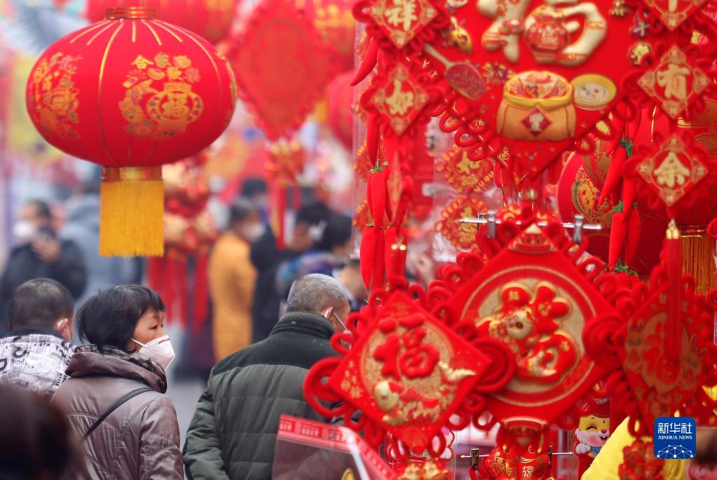 1月13日,游客在河北石家莊正定年貨大集上選購年貨。