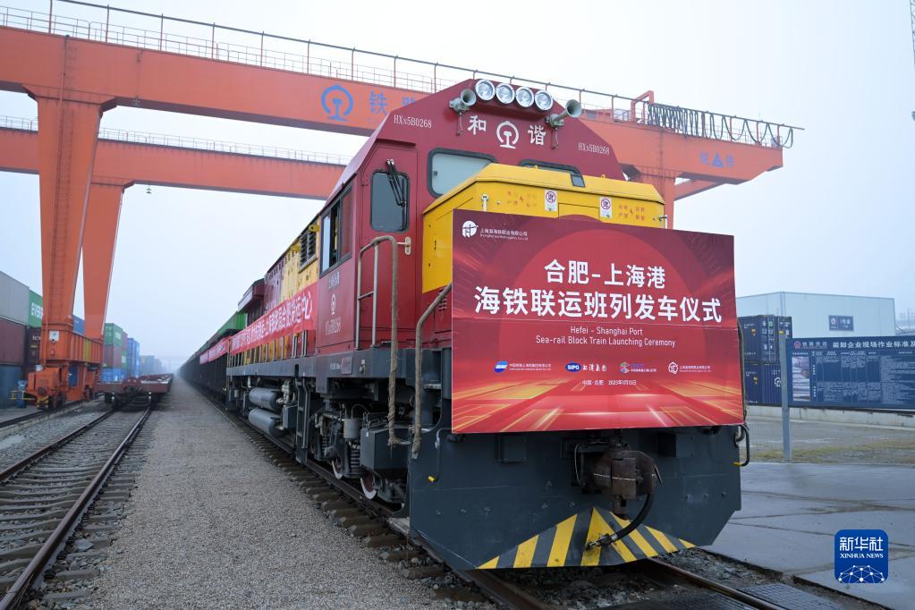 1月13日,在合肥北站物流基地,2023年合肥開(kāi)往上海的首趟海鐵聯(lián)運班列即將發(fā)車(chē)。
