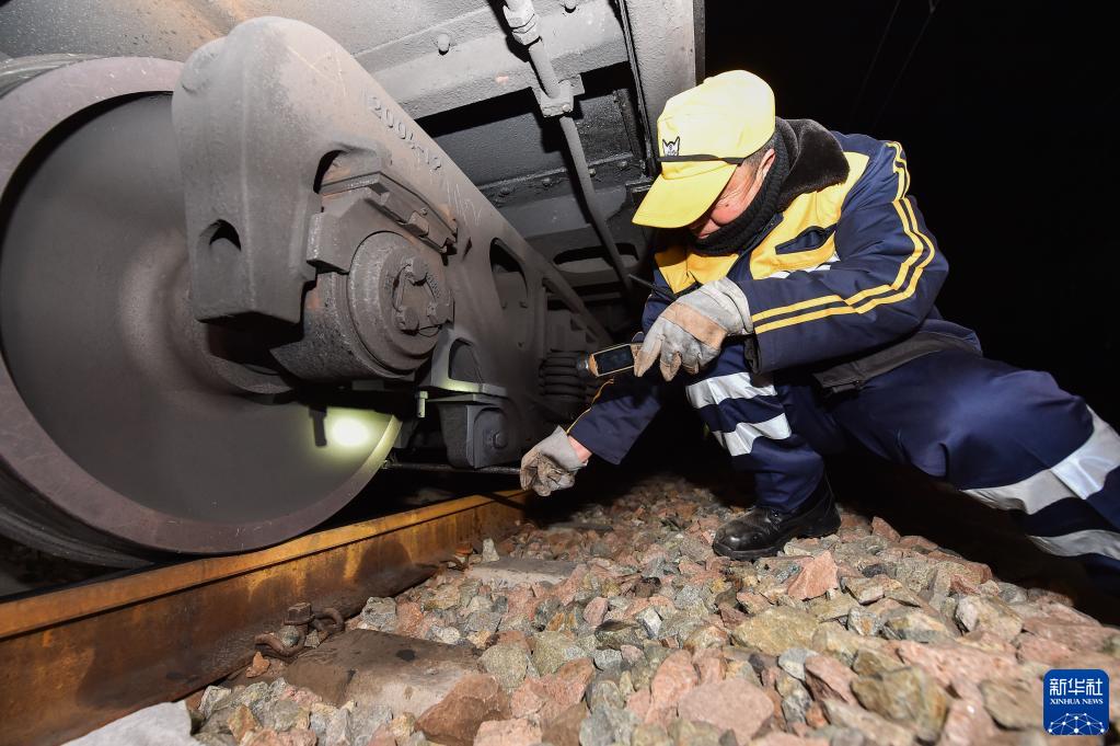 1月11日,吉海清在為萬(wàn)噸大列進(jìn)行檢查。新華社記者 劉磊 攝