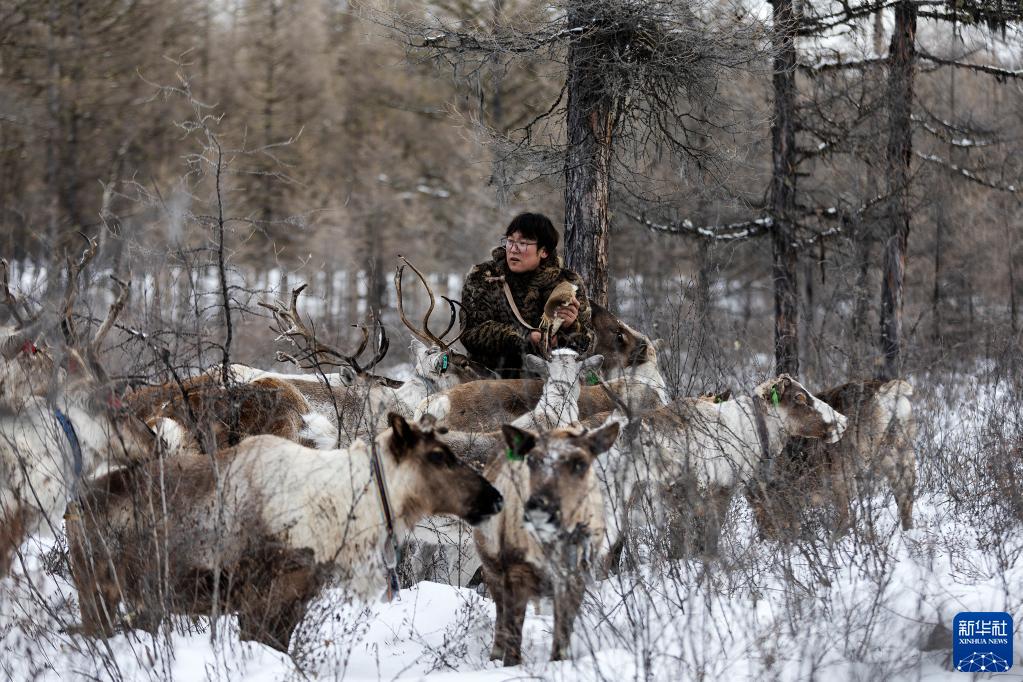1月12日,覺(jué)樂(lè )在給鹿群喂豆餅。新華社記者 費茂華 攝