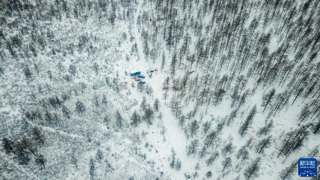 這是1月12日拍攝的覺(jué)樂(lè )在大興安嶺林區深處的臨時(shí)放牧點(diǎn)(無(wú)人機照片)。新華社記者 彭源 攝