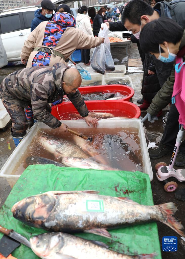 1月12日,市民在蒲河大集上買(mǎi)魚(yú)。