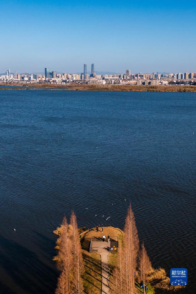 1月12日拍攝的昆明滇池一景(無(wú)人機照片)。