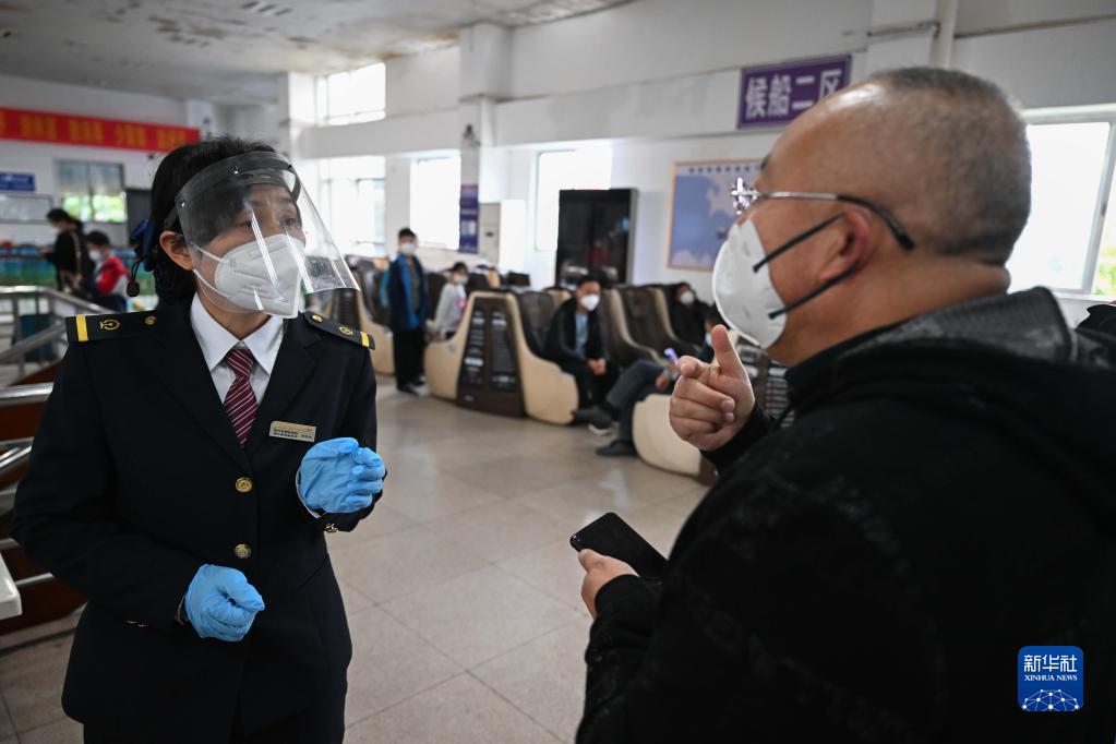 在廣東徐聞的粵海鐵路輪渡北港碼頭客運樓,旅客向肖玉鳳(左)咨詢(xún)(1月9日攝)。