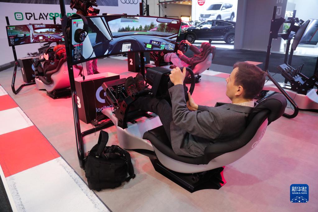 1月13日,人們在比利時(shí)布魯塞爾舉辦的第100屆布魯塞爾車(chē)展媒體預展電子競技展區參觀(guān)體驗。
