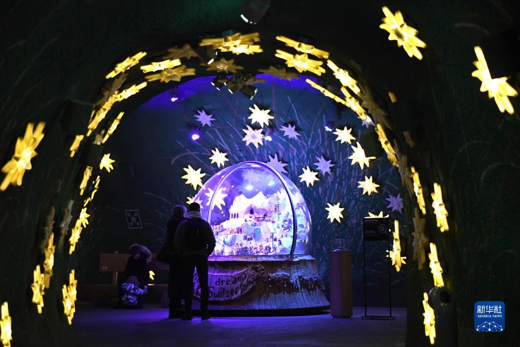 1月12日,游客在瑞士少女峰火車(chē)站內參觀(guān)。